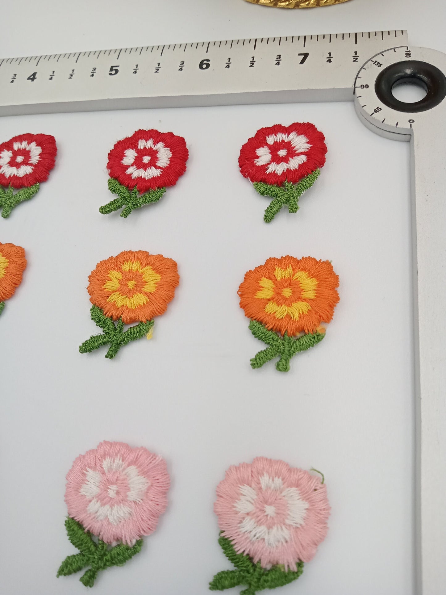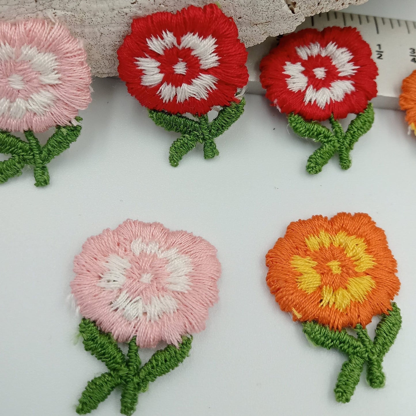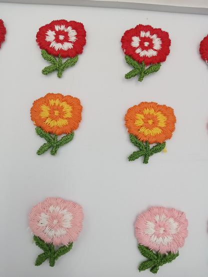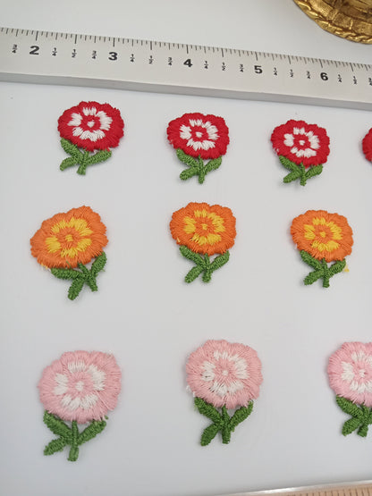 12 pieces FLORAL VINTAGE appliqués white orange yellow green red pink flower Patches #107