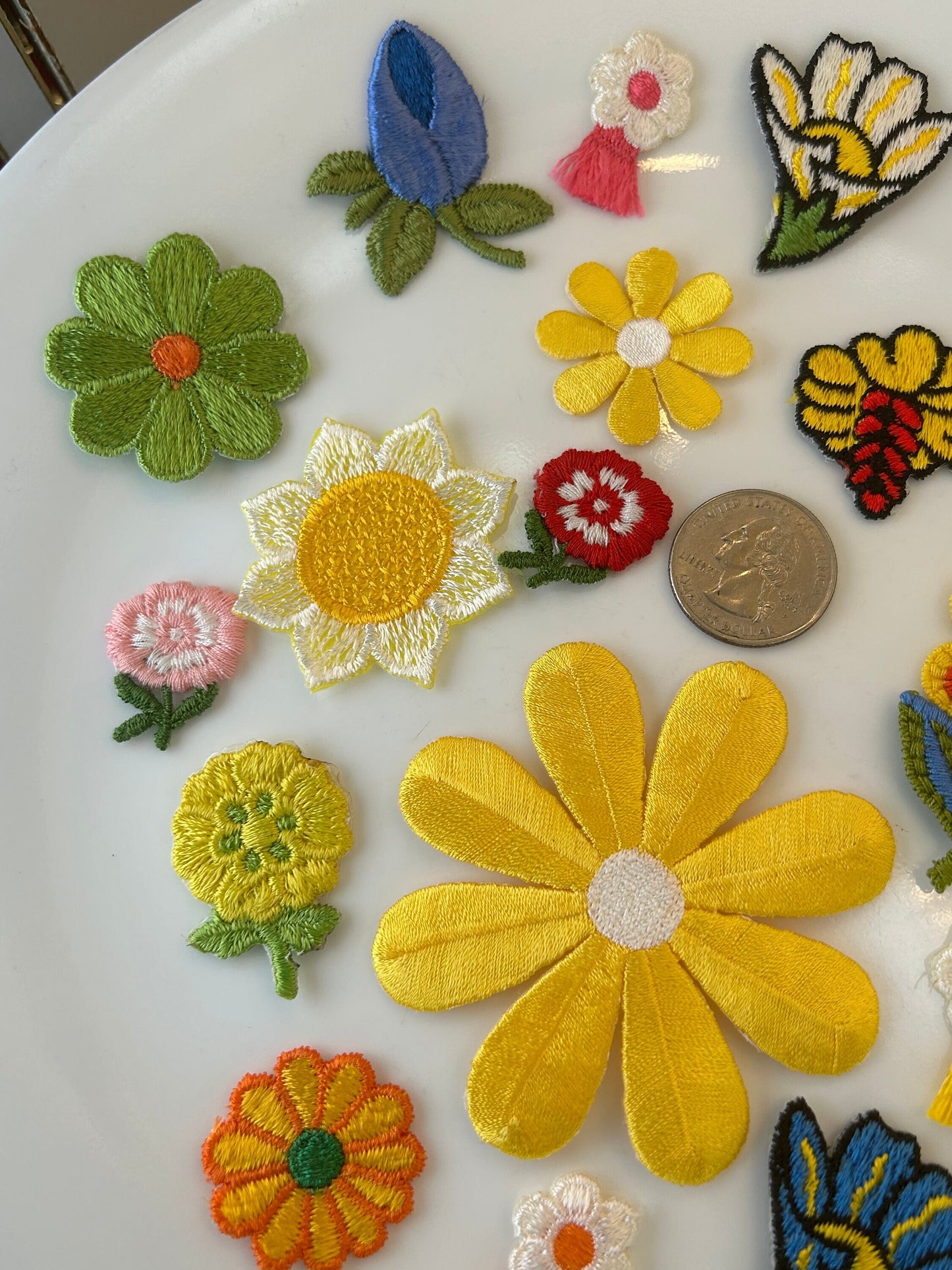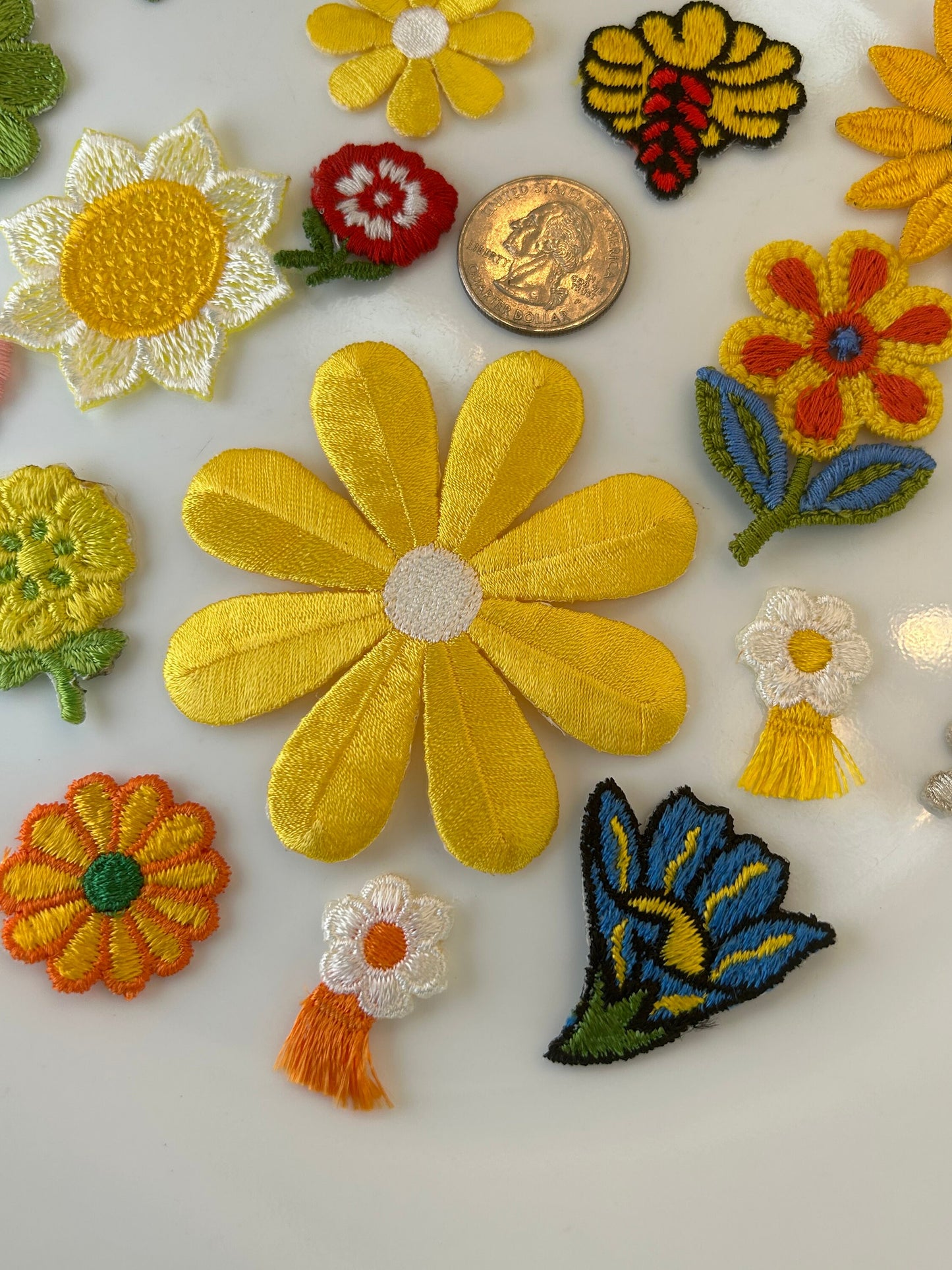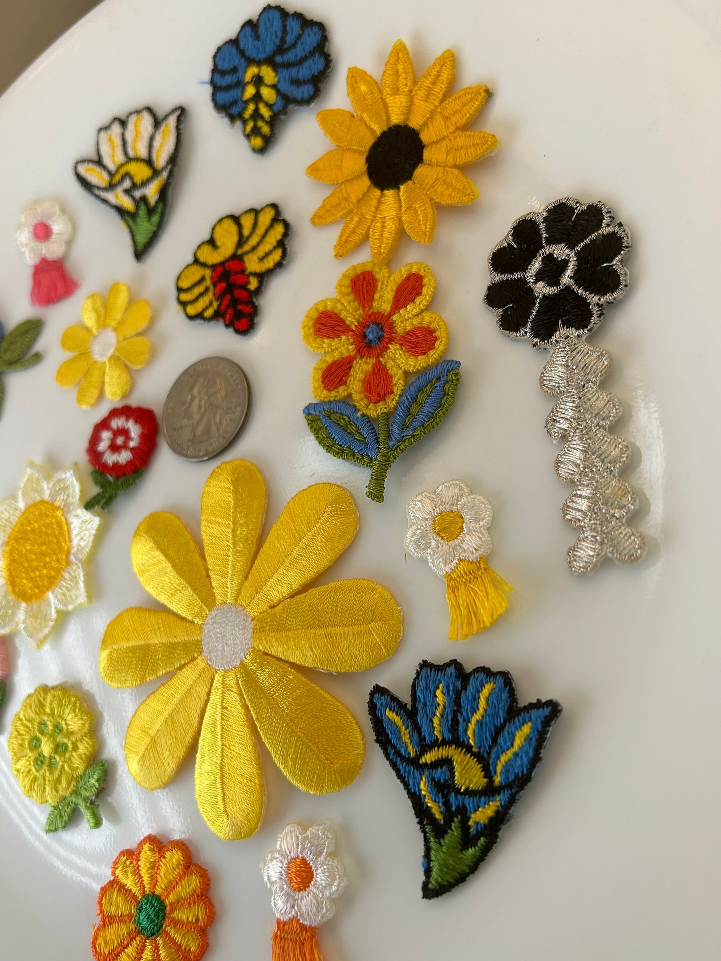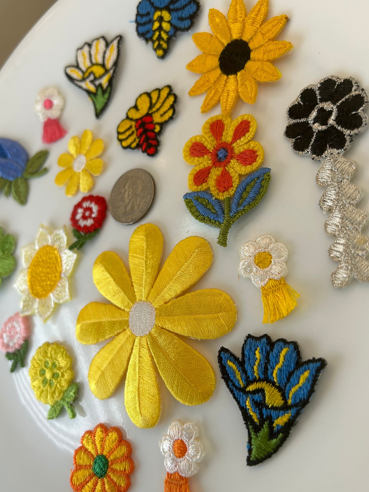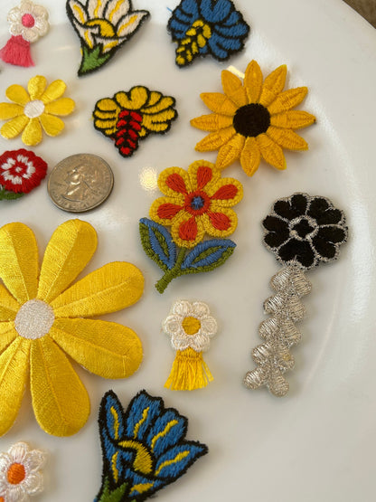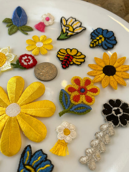 18 pieces FLORAL VINTAGE appliqués giant yellow silver black blue red white orange flower iron on Patches #14