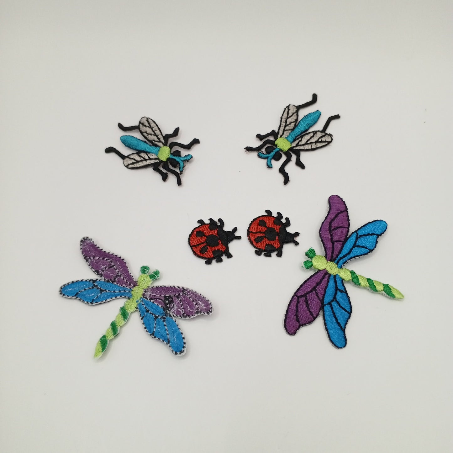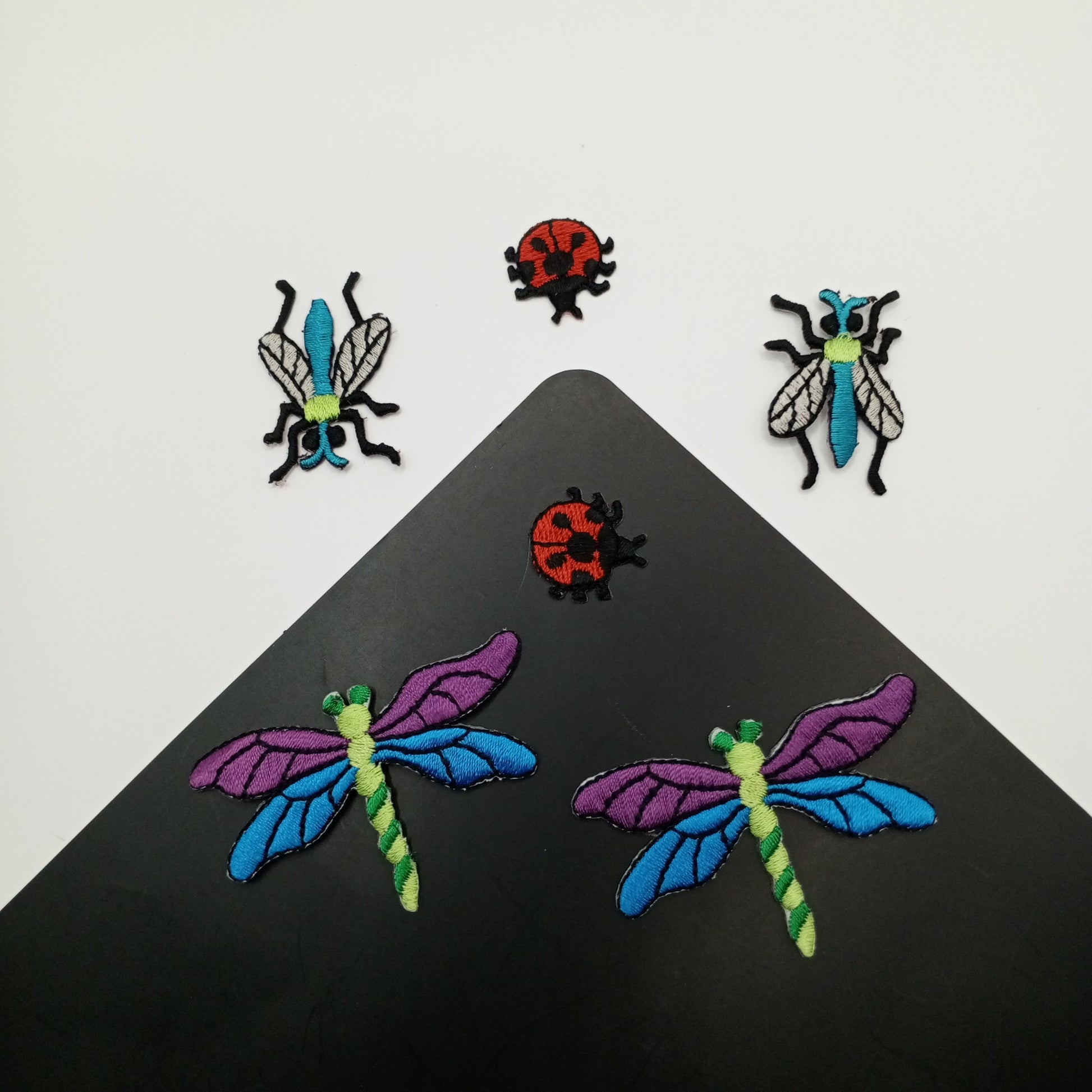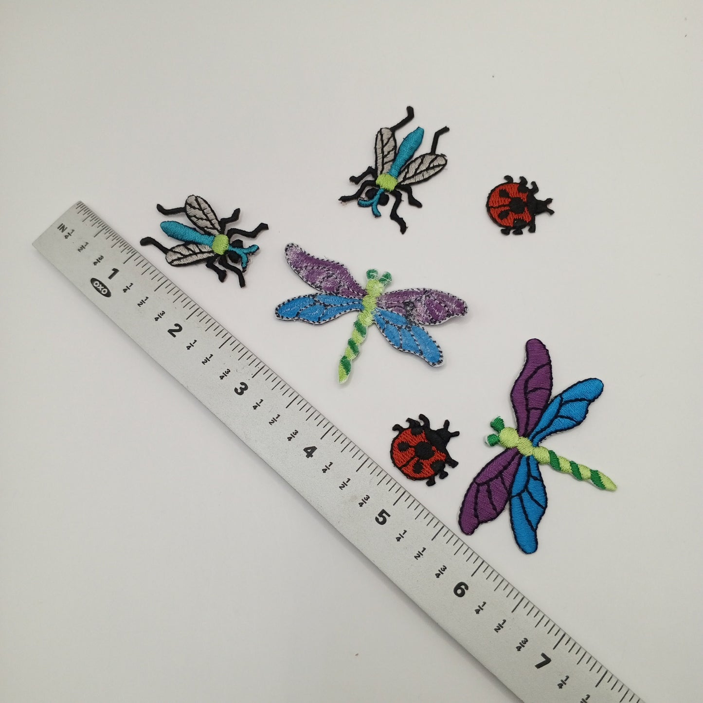 6pcs Lovely Red Ladybug Iron-on, Majestic Purple Blue Dragonfly Patches, Swift Pesky Fly Iron-on Insect Appliques Decorative Patch Set #527