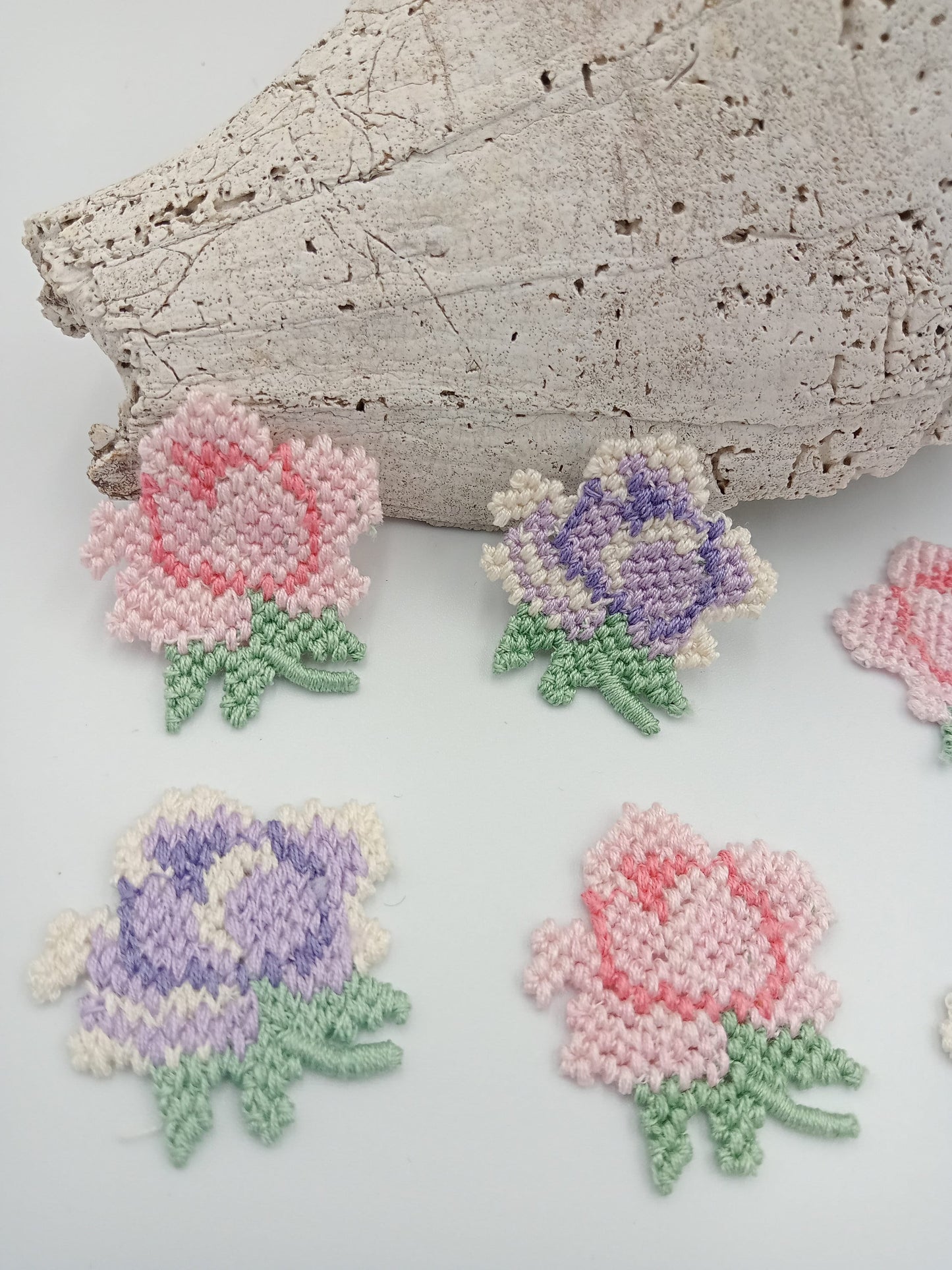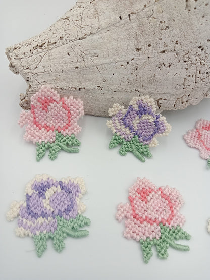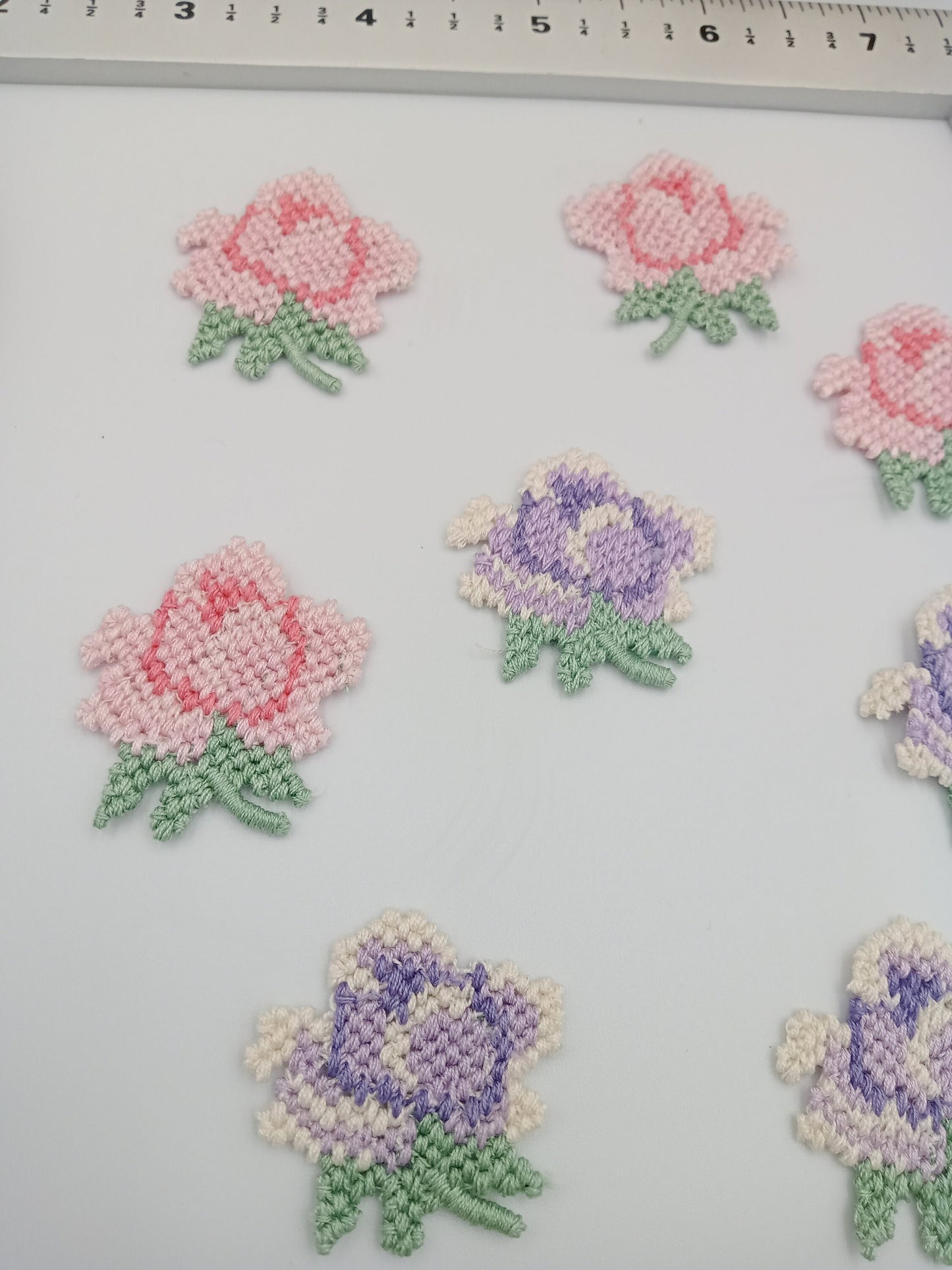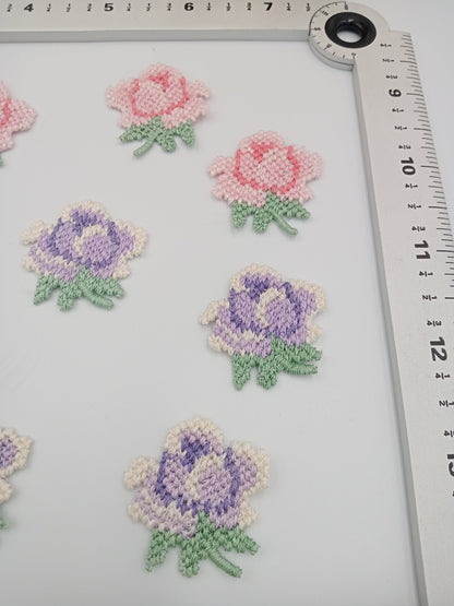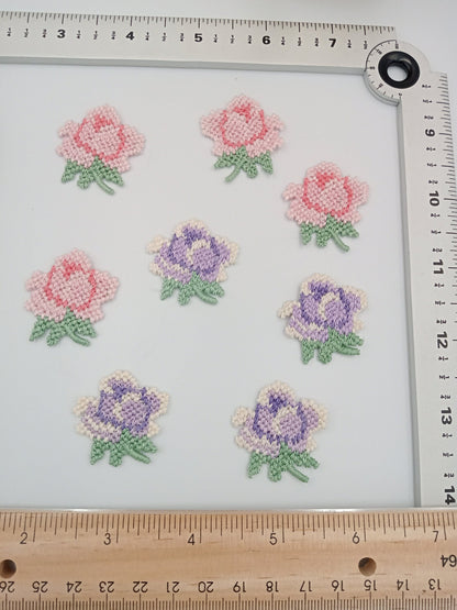 8 pieces FLORAL VINTAGE appliqués white purple green pink flower Patches #106
