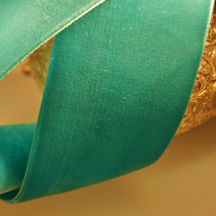 Aquamarine Green Velvet Ribbon Vintage from Switzerland 50mm