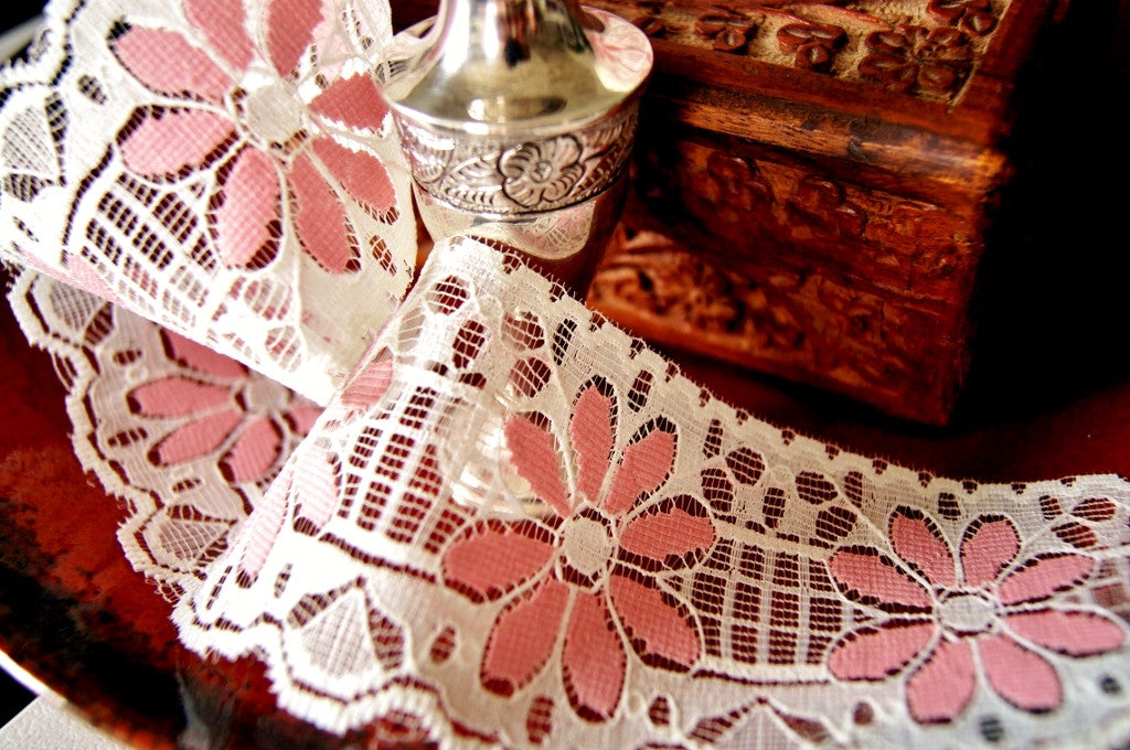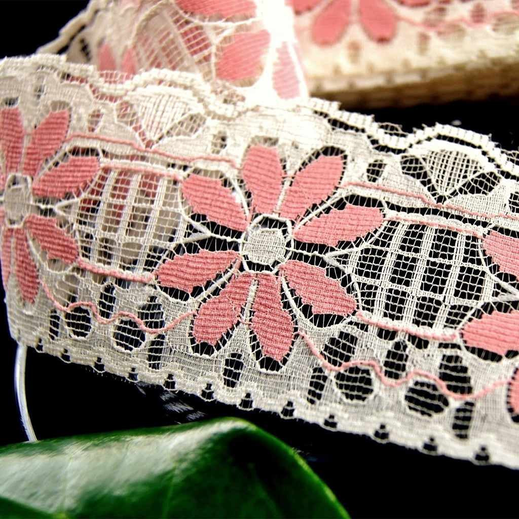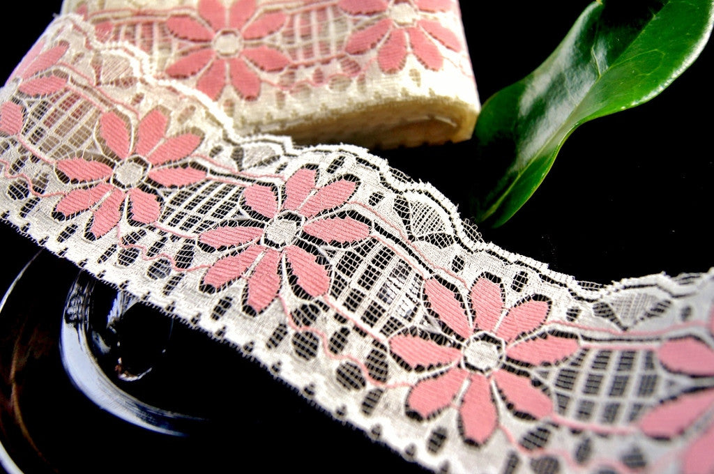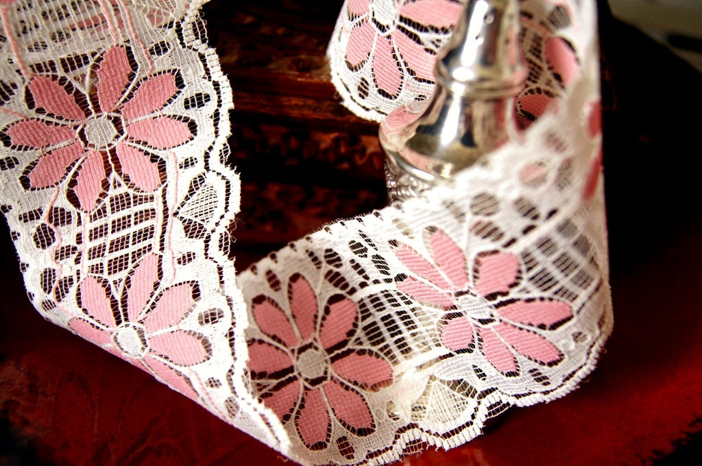 2½" Lovely Floral Lace Trim - Cream / Mauve