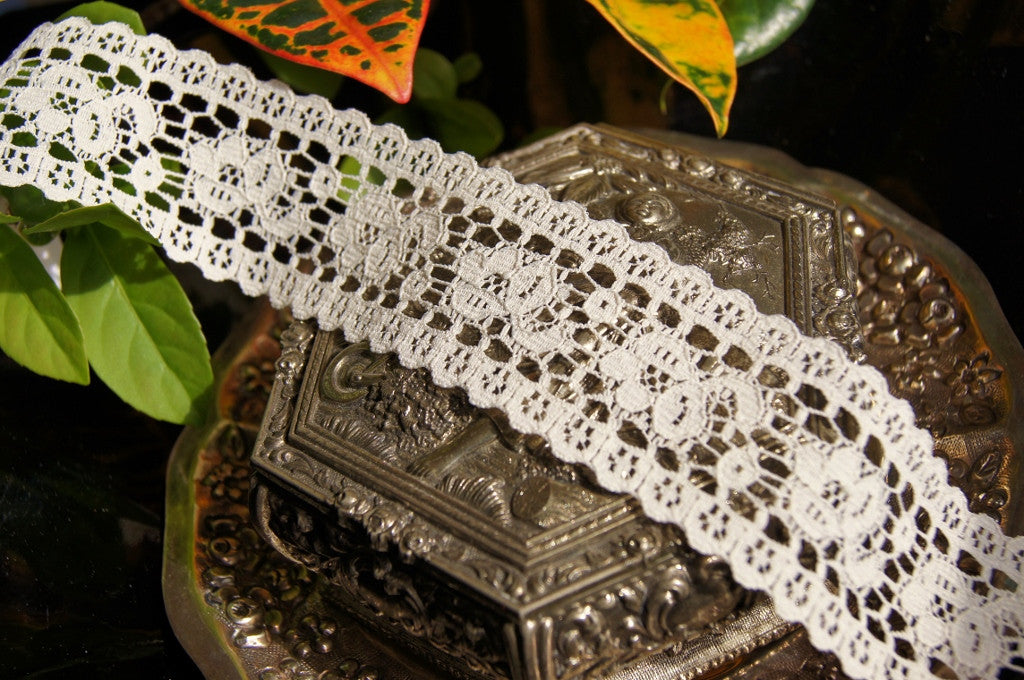 Fancy Galloon Floral Lace Trim 1½" wide - Natural