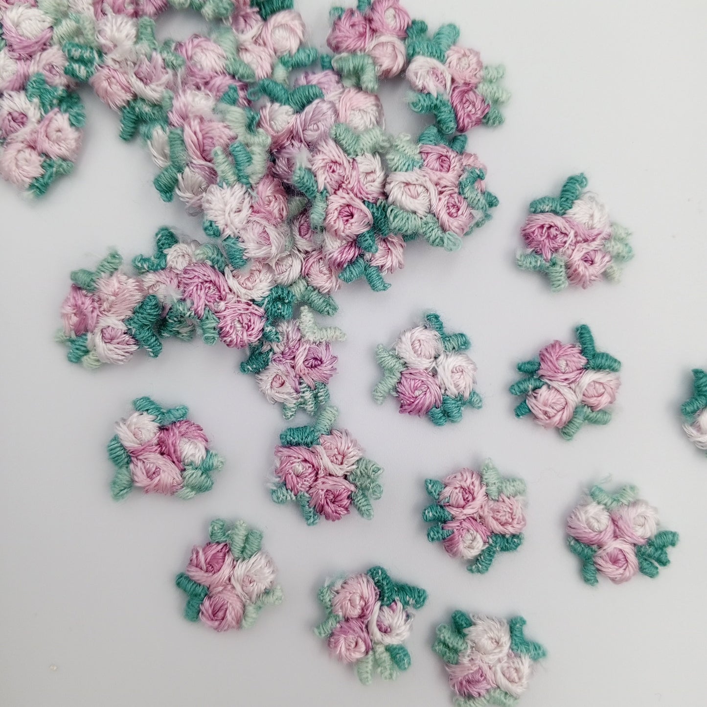 VINTAGE appliques cute green lilac flower embroidery Patches #308