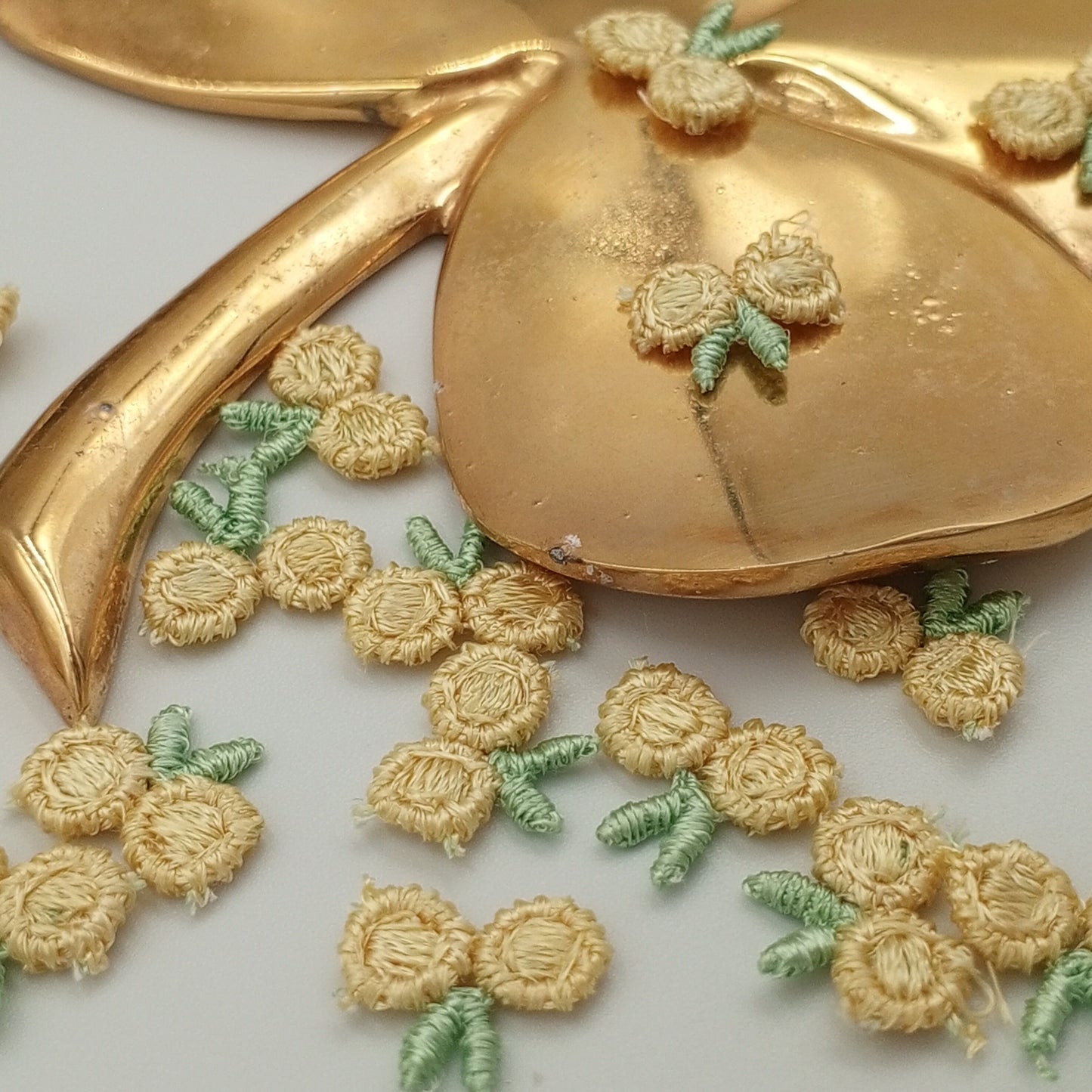 VINTAGE appliques cute green yellow flower embroidery Patches #313