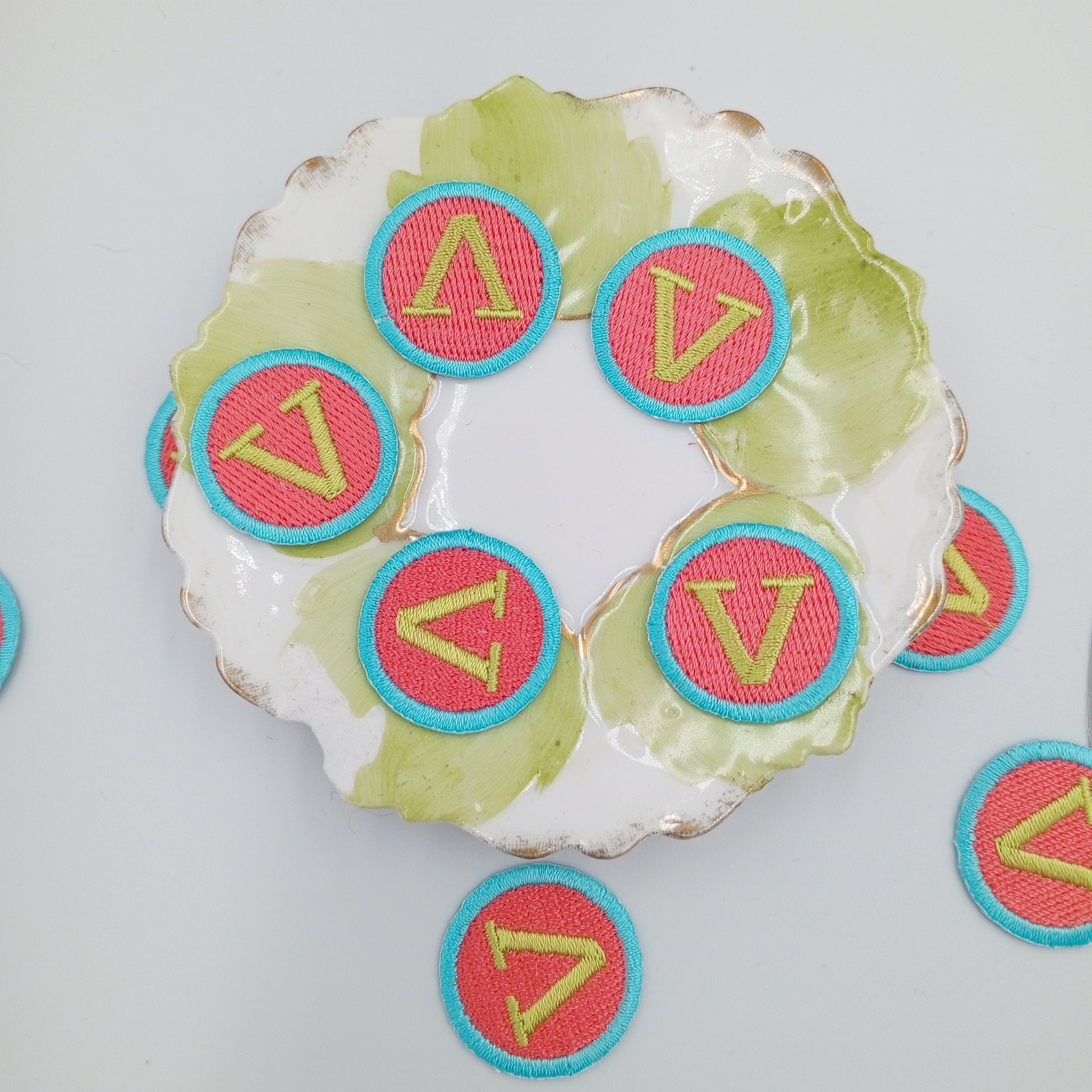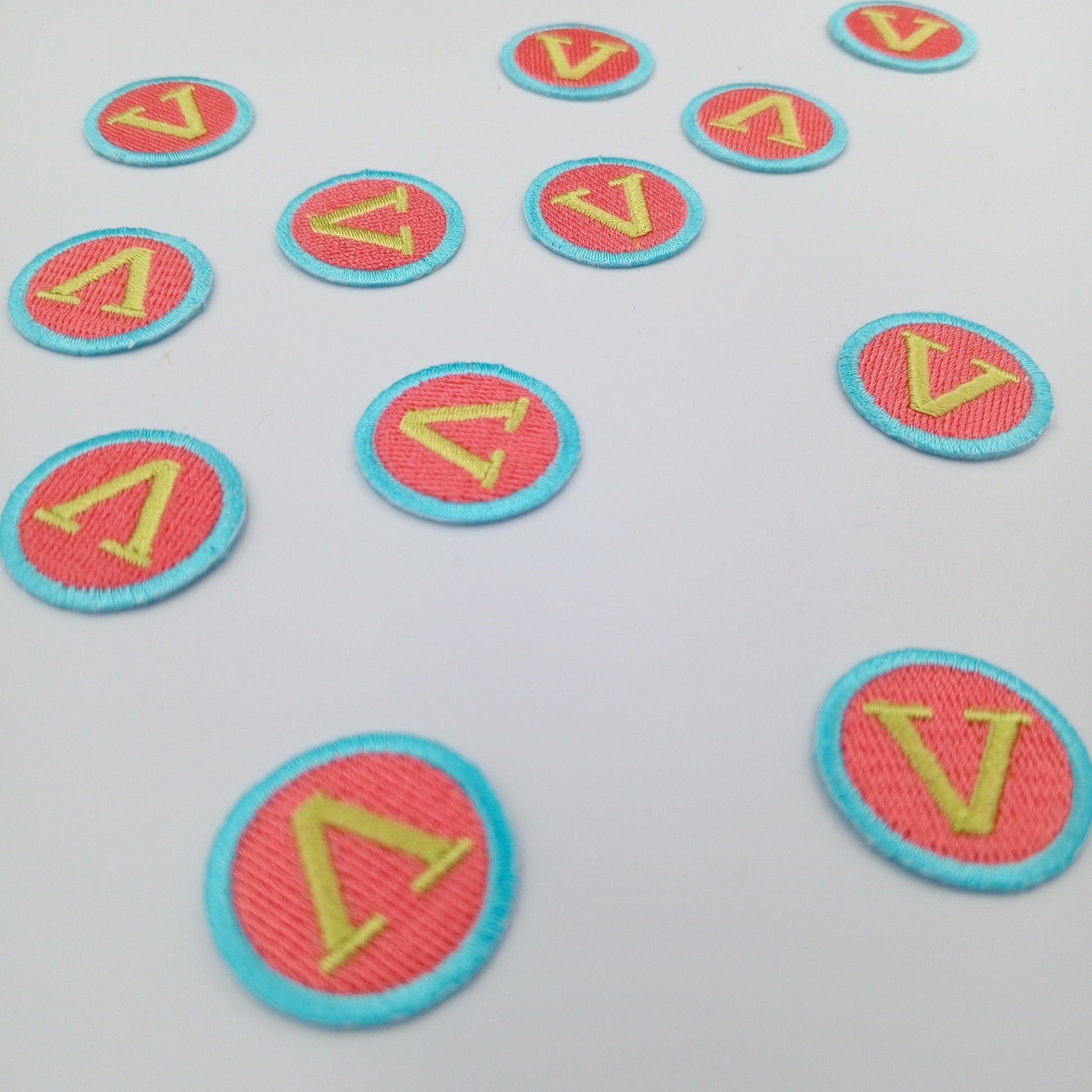 VINTAGE Letter Words Patches blue red V patch Embroidered Appliques #819
